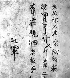 你不在家,你的米我买了廿六斤,大洋二元,大洋在观泗老板手礼(里)。