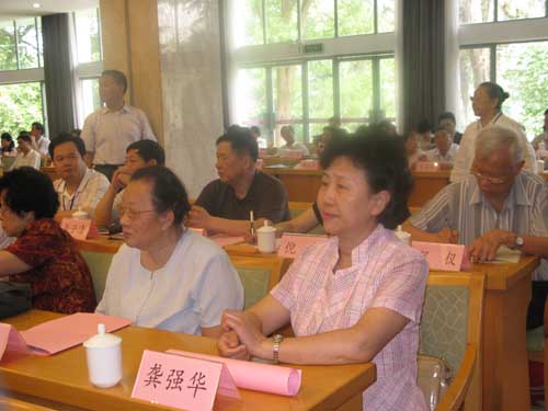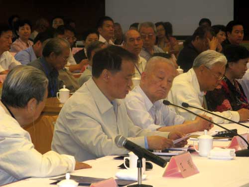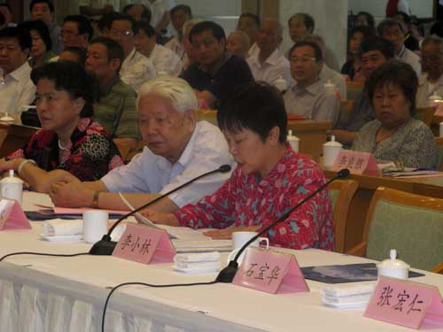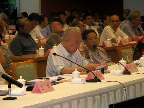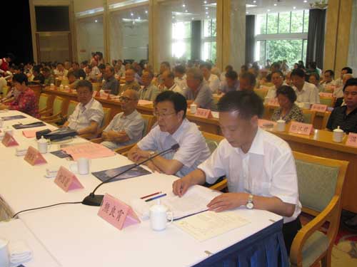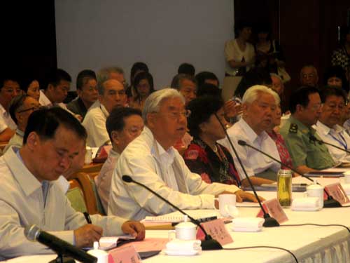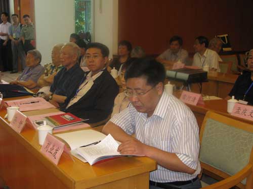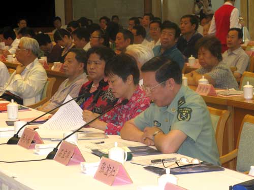 中国新四军研究会会长、中国人民解放军总后勤部原政治委员周克玉上将发言(前排左二)