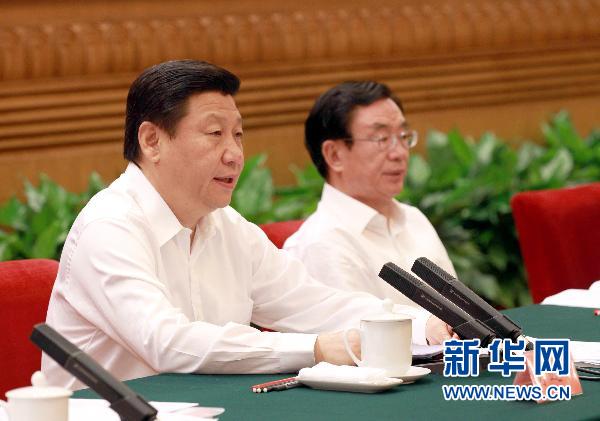 7月21日,全国党史工作会议在北京人民大会堂举行。中共中央政治局常委、中央书记处书记、国家副主席习近平,中共中央政治局常委、中央纪委书记贺国强出席会议。这是习近平在会议上作重要讲话。新华社记者 庞兴雷 摄