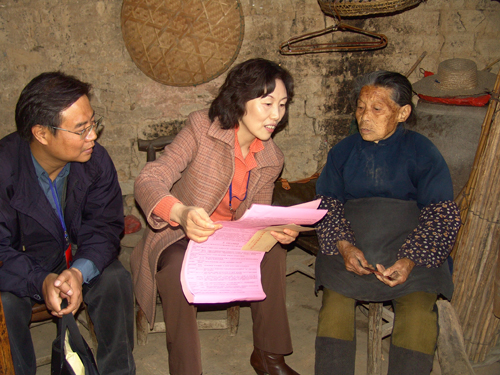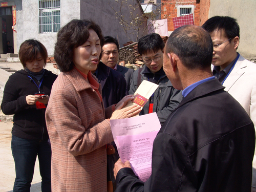 室副主任张帆一行向村民讲解"三万"活动