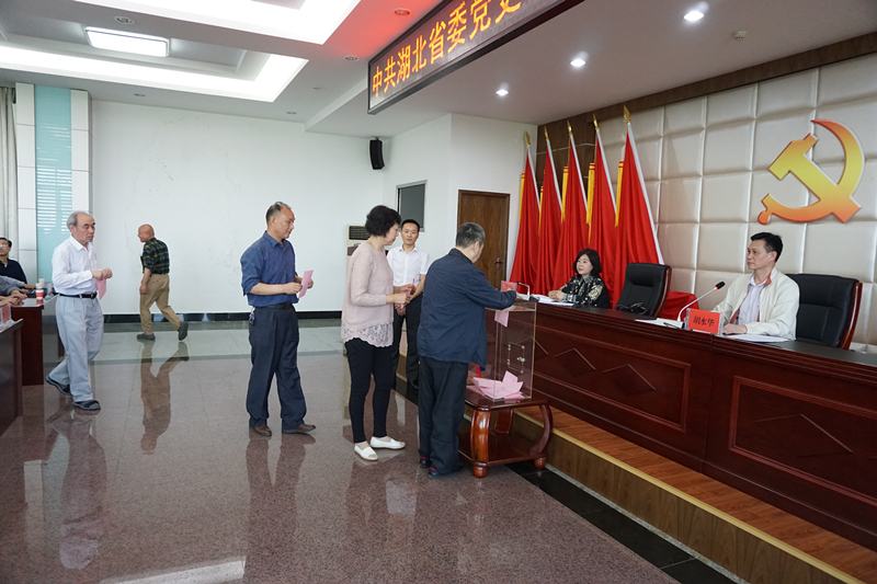 5月12日,省委党史研究室召开全体党员大会,选举省委党史研究室出席中国共产党湖北省第十一次代表大会代表。室主任胡水华主持会议,省级领导班子换届代表委员工作第二巡察督导组、省纪委、省委组织部有关同志全程监督指导选举工作。