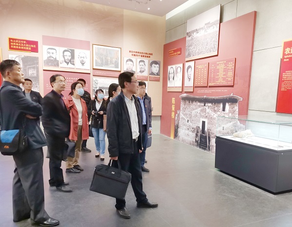 4月28日下午,黄冈市史志研究中心主任颜宏启带领全体干部职工到市博物馆以参观黄冈现代革命史陈列馆的形式开展理论学习中心组第4次集中学习活动。中心邀请到原党史办调研员、展馆布展大纲执笔人陈太其介绍黄冈现代革命史陈列馆布展脉络,讲解黄冈革命的艰辛历程。