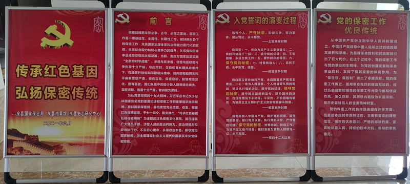 为深入贯彻党的十九大精神、习近平总书记关于总体国家安全观的重要论述和保密工作的重要指示批示精神,弘扬保密革命传统,传承红色基因,房县国家保密局、县档案馆(史志研究中心)充分挖掘、收集、整理红色保密故事,于七一前夕,隆重推出“传承红色基因 弘扬保密传统”为主题的红色保密文化展览。