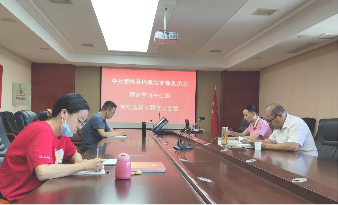 近日,黄梅县档案馆(史志研究中心)理论学习中心组开展党纪法规专题学习。