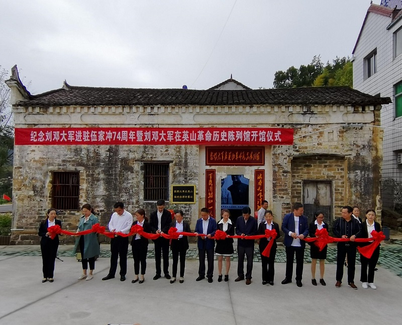 10月14日,黄冈市史志研究中心副主任叶永清一行到英山县雷家店镇伍家冲村出席“刘邓大军在英山革命历史陈列馆”开馆暨“刘邓大军伍家冲战斗遗址纪念碑”揭牌仪式,县档案局局长、档案馆书记方立、雷家店镇党委书记王锦强、县退役军人事务局副局长余洋等陪同。