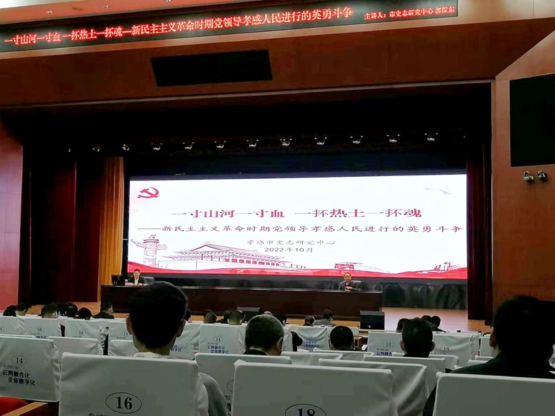 10月25日,孝感市史志研究中心主任郭保东应邀到市委党校为2022秋季学期主体班学员作孝感党史专题报告,带领学员重温革命先辈事迹,传承红色基因,赓续红色血脉。市委党校副校长高晓胜主持报告会。