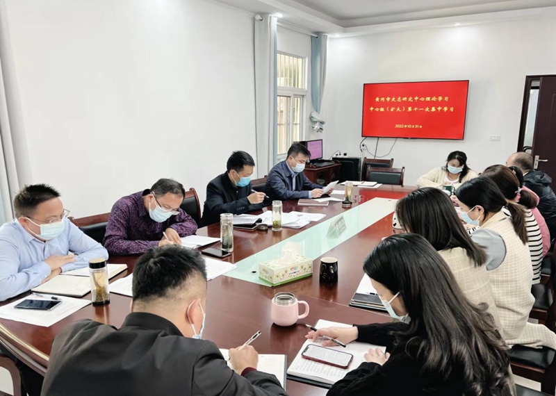 10月31日,黄冈市史志研究中心举行理论学习中心组(扩大)集体学习,专题研学党的二十大精神。市史志研究中心主任江明主持并讲话,副主任张进、陈军、叶永清参加研学并作交流发言,各科室干部参加会议。