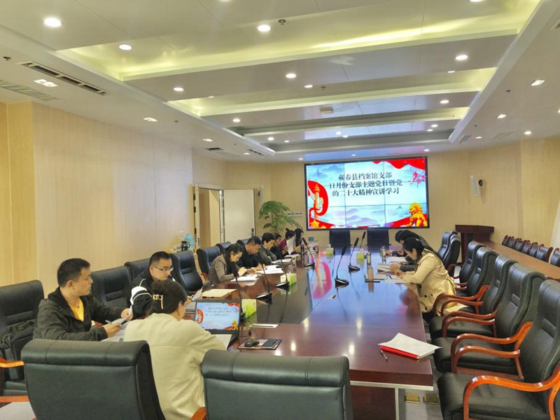 11月3日,蕲春县史志研究中心举行支部(扩大)主题党日活动,集中学习党的二十大精神。中心支部书记詹松青主持活动,中心主任田明华作总结讲话,副主任胡芳芳、吴小明参加研学并作交流发言,各股室干部列席。