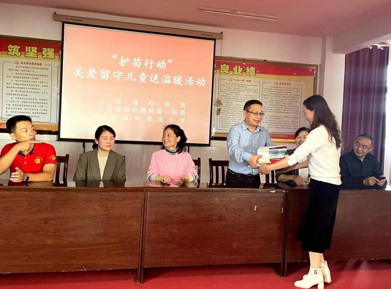 在护苗行动中,县史志研究中心向留守儿童捐赠60个书包、60套文具、120册小学生课外读物等学习用品;现场指导60名学生填写“心语心愿”心愿卡,当场回收到档案馆保存,并邀请这些孩子20年后再进档案馆,看看心语心愿落实情况;还向学校教师捐赠县史志研究中心编撰的《百年公安大事记》《公安县抗日战争史事》《中国共产党公安县历史》等9种图书30本。辣妈酷爸爱心联盟成员举办了交通安全知识讲座。