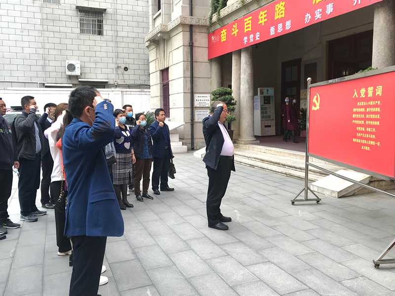 4月16日下午,武汉市委党史研究室党史学习教育第三次专题学习暨理论学习中心组2021年第五次集体学习在武汉中共中央机关旧址纪念馆举行。室理论学习中心组成员和全体干部职工以及结对帮扶单位党员一起走进武汉中共中央机关旧址纪念馆,深入学习贯彻习近平总书记在党史学习教育动员大会上的重要讲话精神,现场重温入党誓词,聆听老党员讲授党课,接受党史教育。
