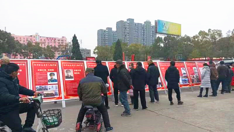 1月30日,在汉川市体育馆“迎新春赶大集”系列展演活动现场,汉川市史志研究中心展出的21块汉川红色历史图片展牌前,一批又一批群众驻足观看、拍照、热烈讨论。