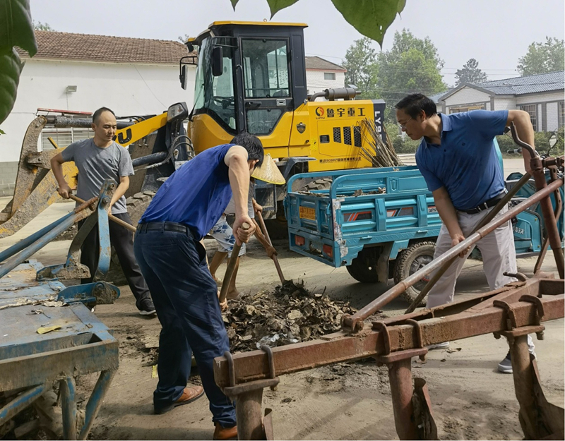 8月20日,组织全体党员干部再赴郑集镇郭海村开展灾后防疫宣传、环境清扫、消毒消杀、困难帮扶等工作。全体党员干部深入各村民小组发放宣传资料,普及灾后防疫知识,让村民了解灾后防疫的重要性及注意事项,提高参与意识和防病意识,同时,帮助村民对暴雨过后的污水、淤泥、杂物进行清运,当日共清理淤泥、垃圾约十多立方。组织消杀工作人员针对村里各处积水地带、水沟边、垃圾桶摆放处等“细菌重灾区”喷洒消毒药水,保证洪灾过后无疫情发生,全力保障村民的身体健康。