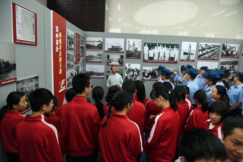 2018年9月,梁发双在“纪念襄阳解放70周年主题展览”讲解。