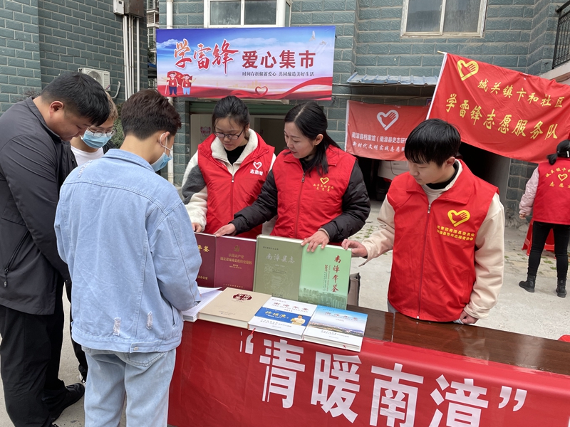 志愿活动由“溯源红色”“故事分享”“图书赠送”等三部分组成,志愿者们与社区工作者和居民共同追忆南漳县党组织成立以来带领全县人民革命斗争和社会主义建设的历程,分享了各个时期模范人物的感人事迹,介绍了党史学习教育的重大意义。同时现场答疑解惑,引导群众查阅《南漳县志》《南漳年鉴》,指导社区工作者建立规范档案和撰写工作日志。通过对一个个经典案例和党史故事进行深入解读和系统阐述,帮助社区党员干部深入了解党的奋斗历程和百年辉煌,感受初心使命,汲取奋进力量,激发干部群众爱党爱国爱家乡和学习雷锋好榜样的热情。