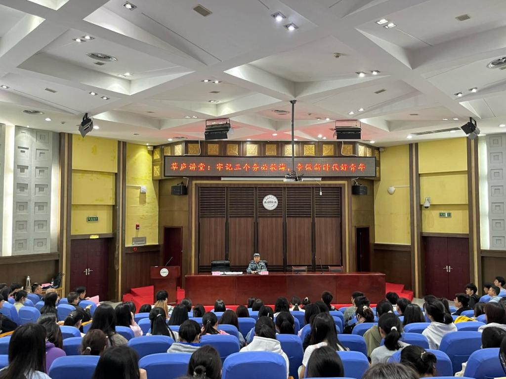 梁双发为学生们讲述了经典城市攻坚战“襄樊战役”的背景、经过及历史影响。寄语青年学生要珍惜来之不易生活学习环境,牢记习近平总书记的“三个务必”的谆谆教诲,刻苦学习、奉献社会,争做堪当大任的新时代青年。受邀嘉宾高玉广曾任中央警卫团毛主席警卫队干部队队员、分队长。他用朴素的语言为同学们深情讲述毛泽东主席艰苦奋斗、俭朴生活的场景,再现了一代伟人勤俭节约的思想与风范。