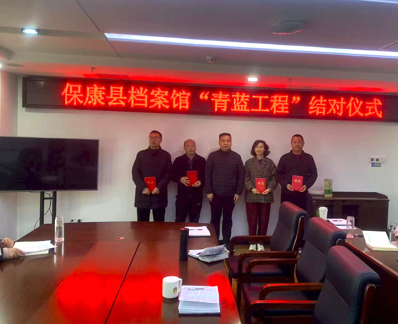 12月1日,保康县档案馆(史志研究中心)举行“青蓝相接,薪火相传”——“青蓝工程”师徒结对仪式,旨在破解业务人才断层困境,保障档案史志事业可持续发展。