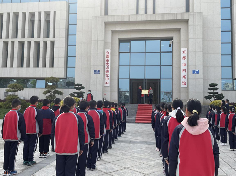 3月15日,宜都市陆逊中小学副校长汪娟娟带领六年级五班师生到市档案馆(史志研究中心)进行德育实践基地的挂牌仪式。馆长罗冬、副馆长蔡小姣、工会主席刘晓峰等参加。