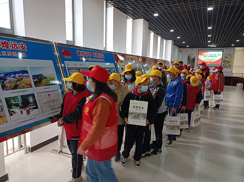 在远安县档案馆(史志研究中心)爱国主义教育基地展厅内,特校孩子们自由徜徉在“建党百年 辉煌远安”中国共产党远安历史系列图片展、远安县瓦仓起义专题历史展和远安党史、县情相关书籍资料的海洋。他们有的兴奋对比和讨论着远安县城的过去与现在,有的被革命先烈英勇的斗争史迹所震撼和吸引,有的则将志愿者们精心挑选赠送的书籍揽入怀中、视若珍宝。孩子们好奇地观看和认真讨论展览内容的场面,深深打动着在场的每一位志愿者。