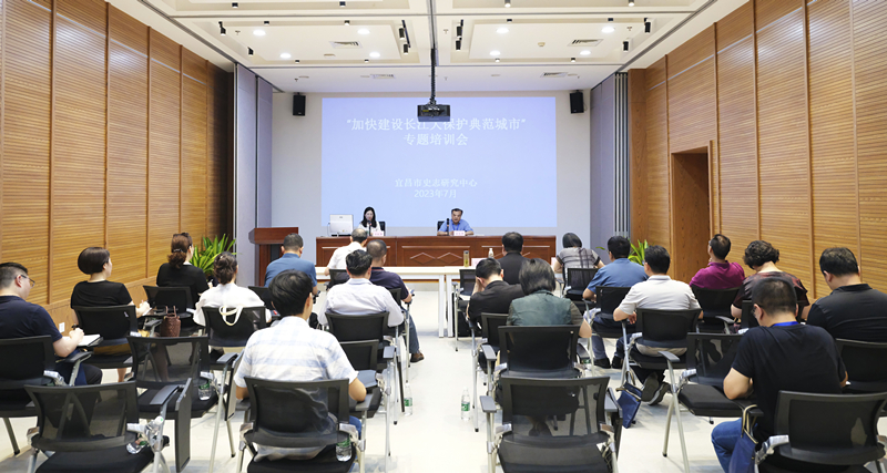 7月7日,宜昌市史志研究中心召开长江大保护典范城市专题培训会,邀请宜昌市委党校老师秦良芳以《努力建设长江大保护典范城市》为题,进行培训授课。