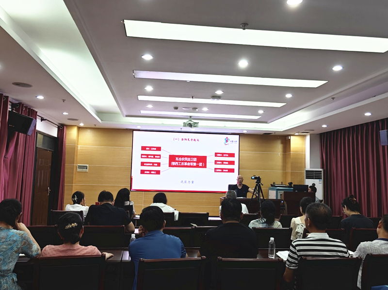贺大霖同志为当阳地方党史专家,曾参与主编或总纂《襄西抗日民主根据地史稿》《襄西抗日民主根据地人物与资料》《中国共产党当阳历史》(第一卷)等重要地方党史资料,与众多老同志、亲历者有过深入交流,了解众多不为人知的地方党史细节。授课中他以“辉煌悲壮的当阳红色记忆”为题,从大革命时期、土地革命时期、抗日战争时期、解放战争时期四个阶段讲述中国共产党在当阳的发展历史,并着重介绍乡俗改良运动、当阳城关起义、当阳瓦仓起义、襄西抗日民主根据地的创建等历史事件的重要细节,为大家展现了一幅生动鲜活的历史画卷。