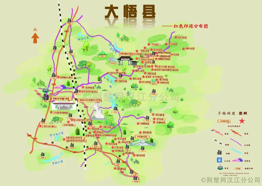 大悟县红色手绘地图