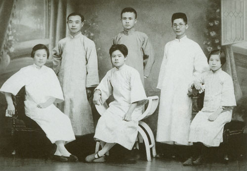 1927年,任弼时(后中)与妻子陈琮英等在武汉合影