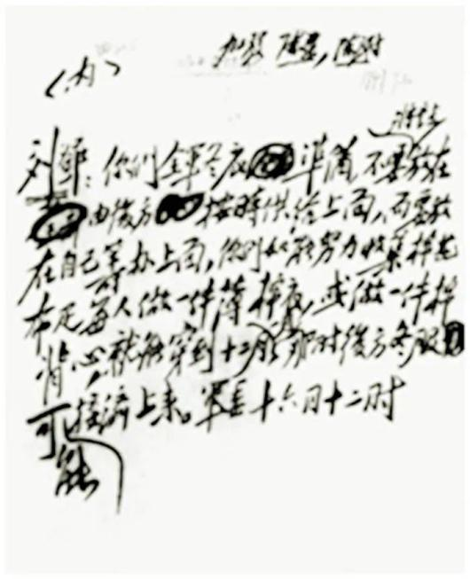 1947年9月16日,毛泽东为中共中央军委起草的指示刘邓部队自己解决棉衣问题的电报。