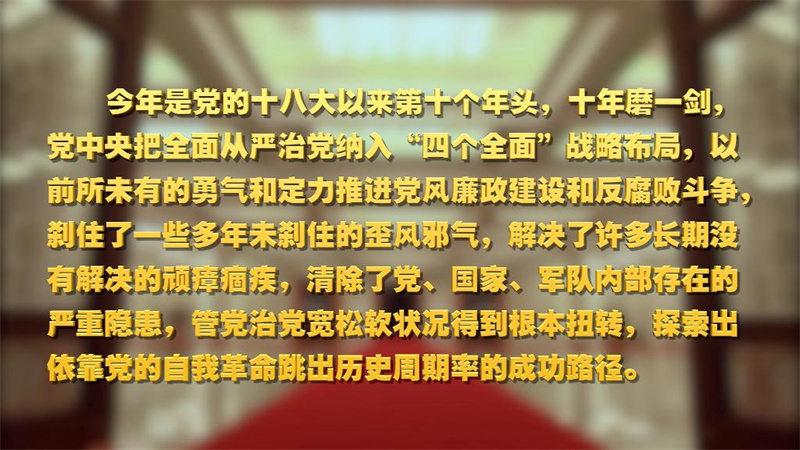 他强调,总结运用党的百年奋斗历史经验,坚持党中央集中统一领导,坚持党要管党、全面从严治党,坚持以党的政治建设为统领,坚持严的主基调不动摇,坚持发扬钉钉子精神加强作风建设,坚持以零容忍态度惩治腐败,坚持纠正一切损害群众利益的腐败和不正之风,坚持抓住“关键少数”以上率下,坚持完善党和国家监督制度,以伟大自我革命引领伟大社会革命,坚持不懈把全面从严治党向纵深推进。