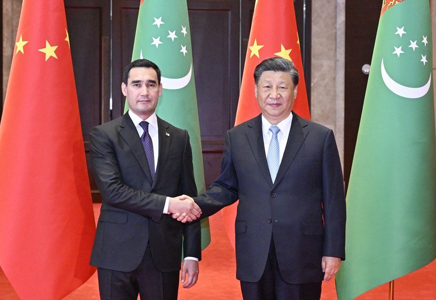 5月18日下午,国家主席习近平在西安会见来华出席中国-中亚峰会的土库曼斯坦总统别尔德穆哈梅多夫。