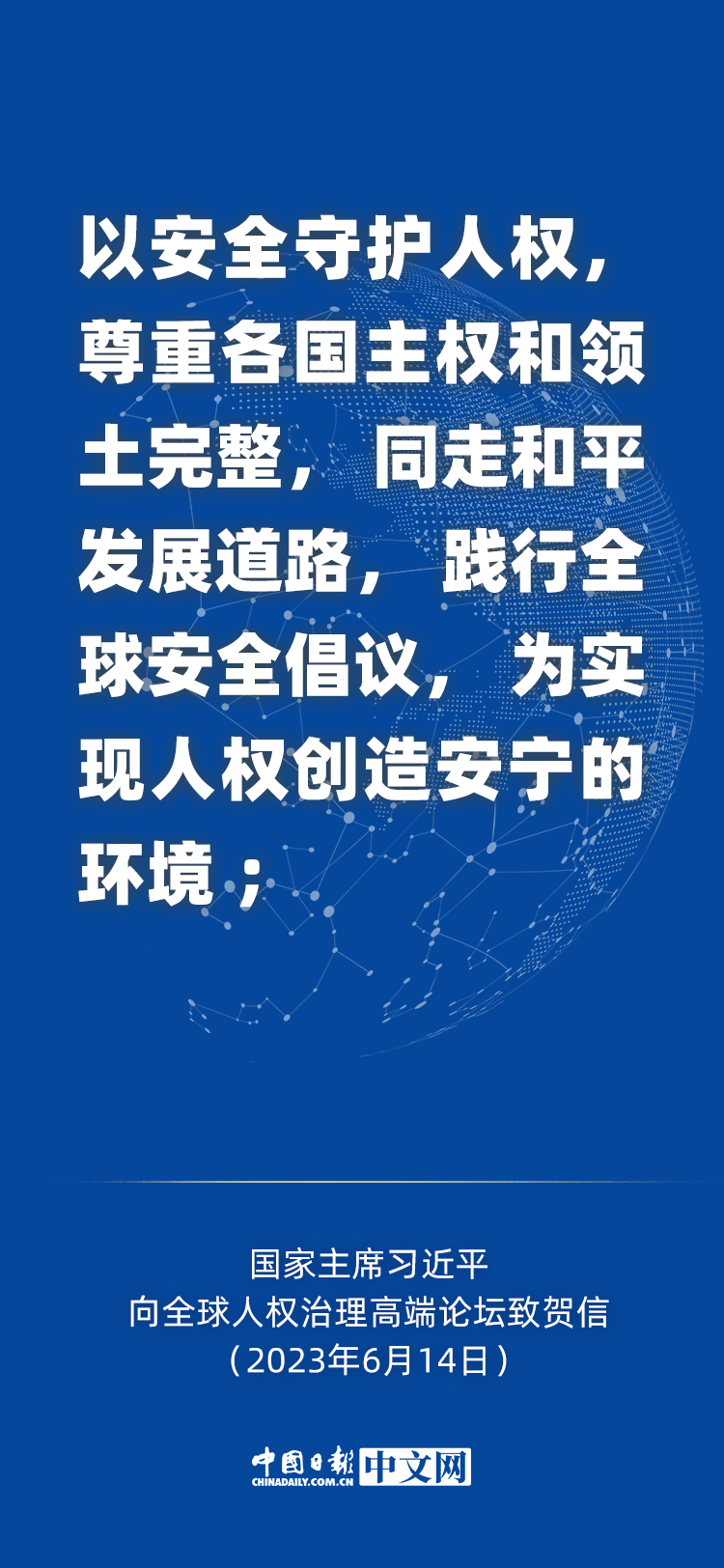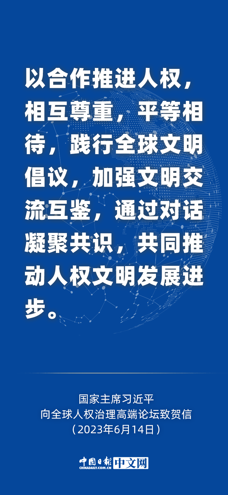 6月14日,国家主席习近平向全球人权治理高端论坛致贺信。习近平指出,当前,人类又一次站在历史的十字路口,全球人权治理面临严峻挑战。我们主张: