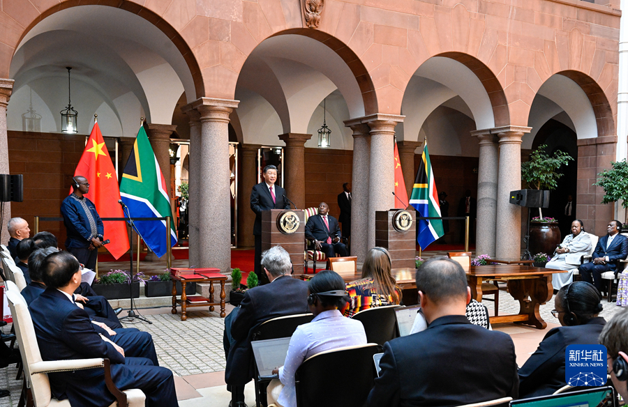 当前,中国共产党正团结带领中国人民以中国式现代化全面推进中华民族伟大复兴,南非也在积极自主探索符合本国国情的发展道路。中南关系面临新的发展机遇。刚才,我同拉马福萨总统举行了富有成果的会谈,就新时代两国关系发展以及共同关心的国际和地区问题交换了意见,达成重要共识。我们见证了一系列重要双边合作文件签署。我对两国友好合作关系前景充满信心。