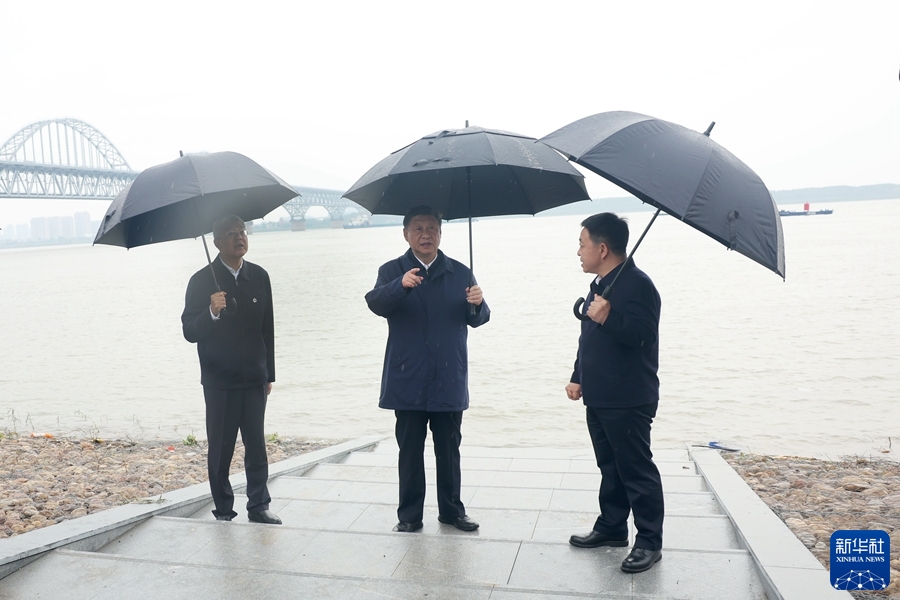 10日下午,习近平来到九江市考察调研。在长江国家文化公园九江城区段,习近平登上琵琶亭远眺长江,冒雨沿江堤步行察看沿岸风貌,仔细询问长江水位、水质、航运、防洪、禁渔等情况,听取当地崩岸治理、航道疏浚、岸线生态修复等工作进展介绍。习近平指出,长江是长江经济带的纽带。无论未来长江经济带怎么发展、发展到哪个阶段,都不可能离开长江的哺育。要从人与自然和谐共生的生命共同体出发,着眼中华民族永续发展,把长江保护好。