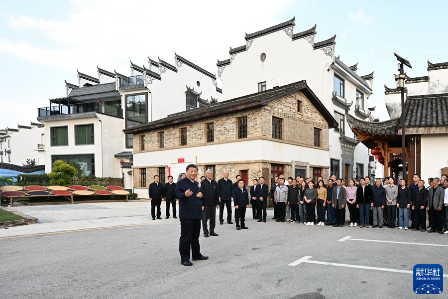 10月10日至13日,中共中央总书记、国家主席、中央军委主席习近平在江西考察。这是11日下午,习近平在上饶市婺源县秋口镇王村石门自然村考察。新华社记者 谢环驰 摄
