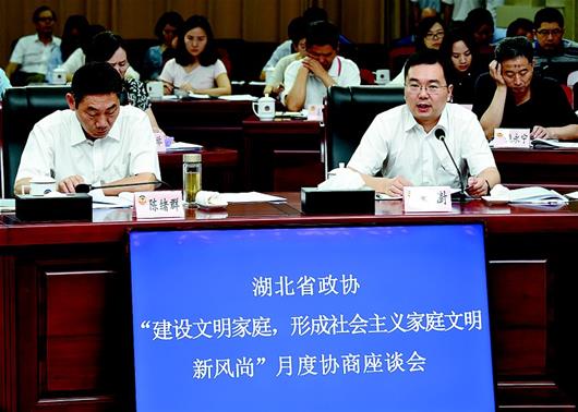 寻找“最美荆楚家庭”“清风满家”主题实践……近年来,我省实施家风倡扬、家教促进、家庭服务等系列行动,文明家庭建设推进有力、成效显著,对文明湖北建设起到重要的支撑作用。但在家庭美德培育、家风传承、家庭教育,包括亲子关系、老人赡养、三留守问题等方面还存在一些突出问题,亟待重视和解决。昨日,省政协“建设文明家庭,形成社会主义家庭文明新风尚”月度协商座谈会上,政协委员、专家学者畅所欲言,有关部门积极回应,协商民主氛围浓厚。