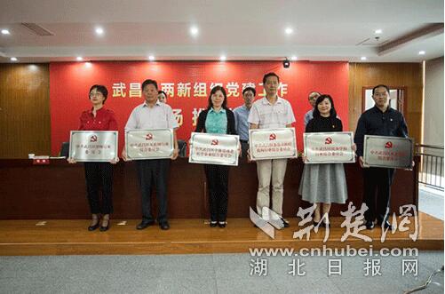 武汉市委组织部有关负责人、武昌区领导为武昌区六个行业党委授牌。 摄影:柯君