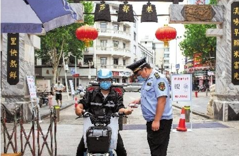5月5日上午10时,在黄冈市黄州区江岸名都小区,黄冈市中级人民法院法官丁琪、长江小学教师洪宇两人臂挽红袖章,站在门外卡点,对进入人员扫码、测温、登记。小区综合党支部书记郝诗光介绍,“五一”期间有35名下沉党员干部参与值守,在小区实行“身份必问、信息必录、体温必测、口罩必戴”的“四必”管控,对外来返黄人员登记身份信息、查验核酸检测报告,并向社区上报其前14天的活动轨迹。