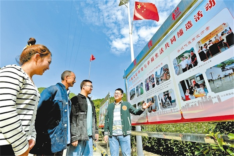 9月23日,南漳县长坪镇长坪社区工作人员正在介绍“五共”理念共同缔造易迁户的幸福生活的情况。(视界网 熊明银 江劲邑 摄)