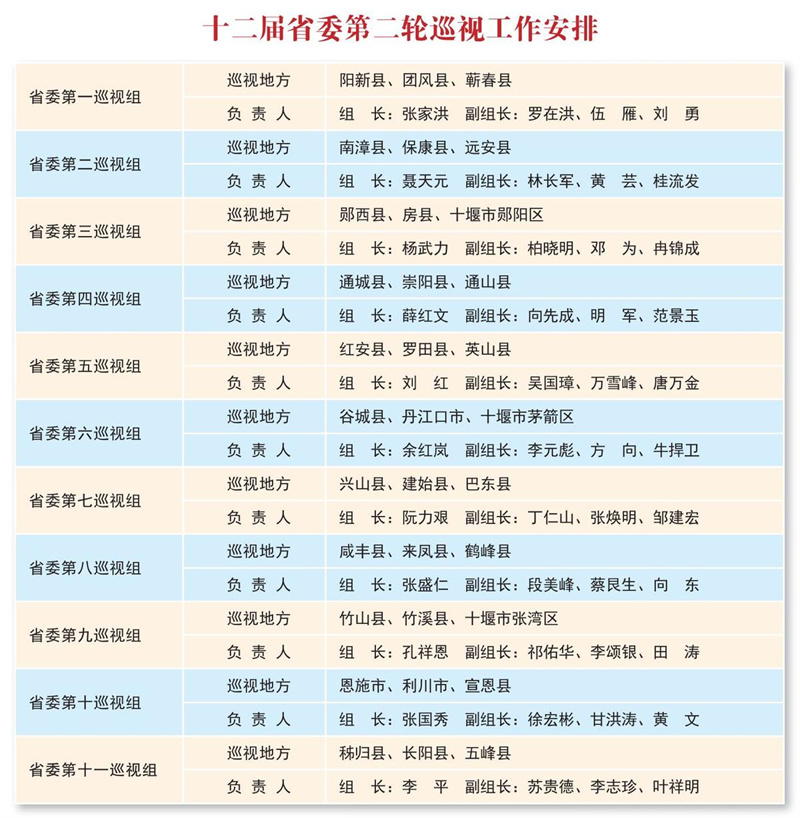 经省委批准,十二届省委第二轮巡视将派出11个巡视组对阳新县等33个脱贫县(市、区)开展常规巡视,为期两个月左右。巡视期间同步开展选人用人、意识形态工作责任制落实情况和巡察工作专项检查。