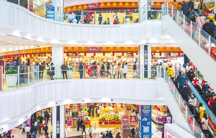今年以来,我省社会消费品零售额增速持续跑赢全国大盘。图为武汉永旺梦乐城经开店内,购物者络绎不绝。