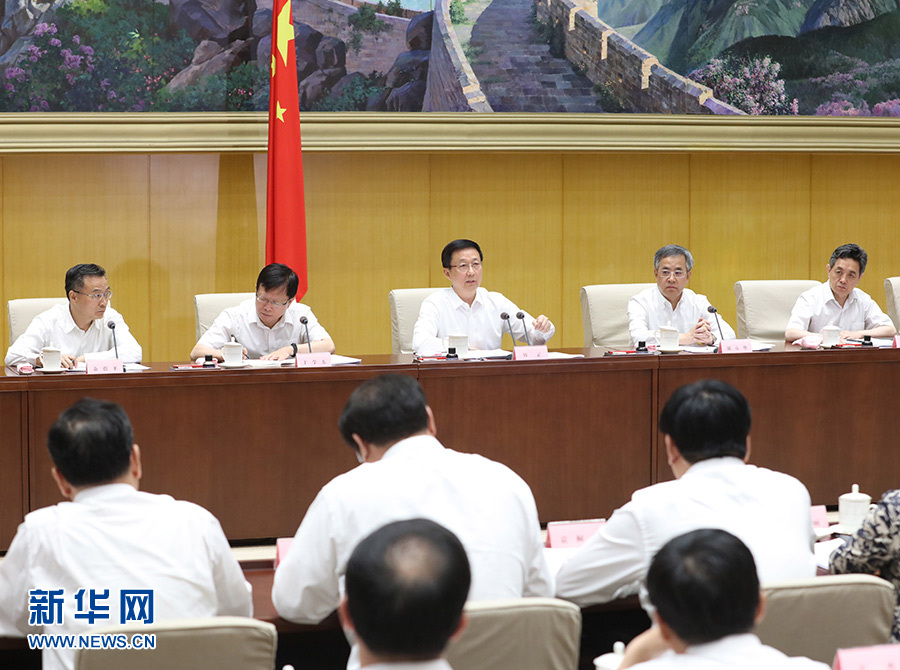 中共中央政治局常委、国务院副总理韩正出席会议并讲话,中共中央政治局委员、国务院副总理胡春华主持。