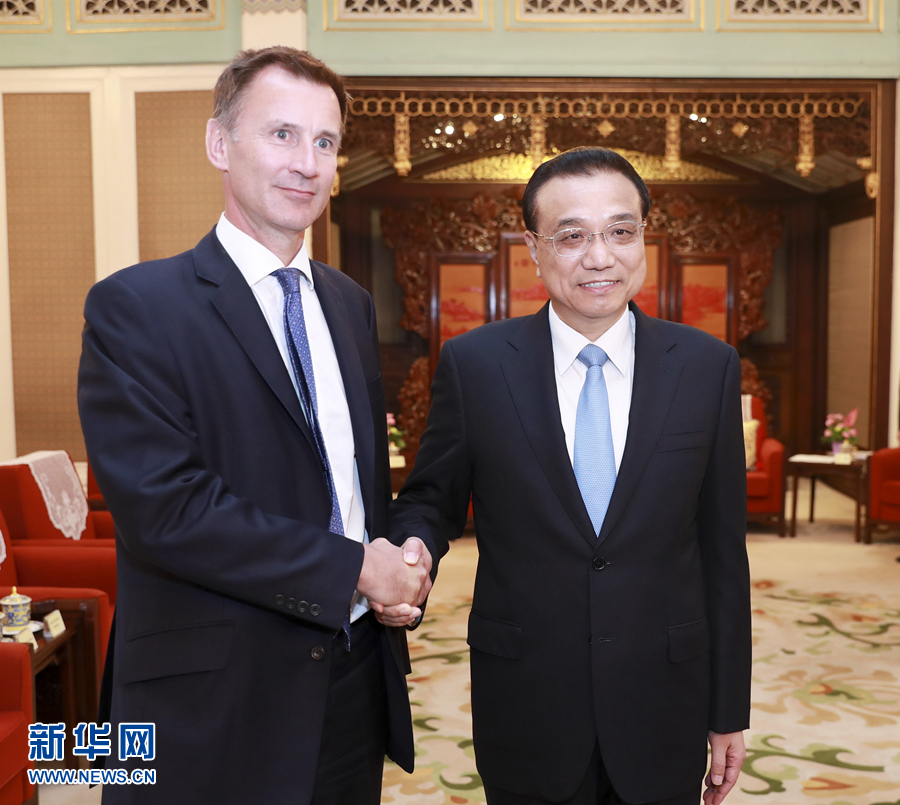 新华社北京7月31日电(记者谭晶晶)国务院总理李克强30日下午在中南海紫光阁会见来华出席第九次中英战略对话的英国外交大臣亨特。