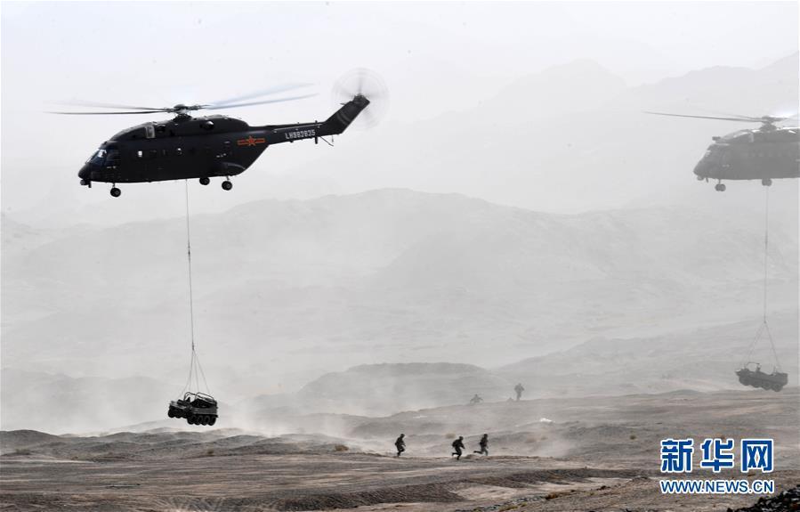 陆军练兵备战及转型建设集训中,某空中突击旅进行实兵实弹演练(5月23日摄)。新华社记者 张永进 摄