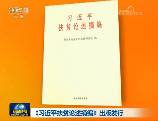 央视网消息 (新闻联播):中共中央党史和文献研究院会同国务院扶贫办编辑的《习近平扶贫论述摘编》一书,近日由中央文献出版社出版,在全国发行。