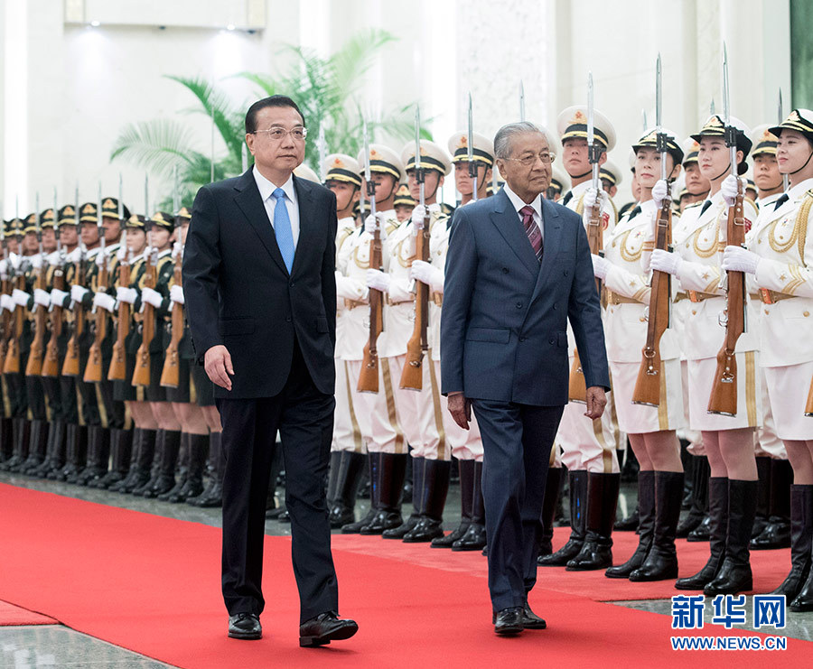 8月20日,国务院总理李克强在北京人民大会堂同来华进行正式访问的马来西亚总理马哈蒂尔举行会谈。这是会谈前,李克强在人民大会堂北大厅为马哈蒂尔举行欢迎仪式。 新华社记者 王晔 摄
