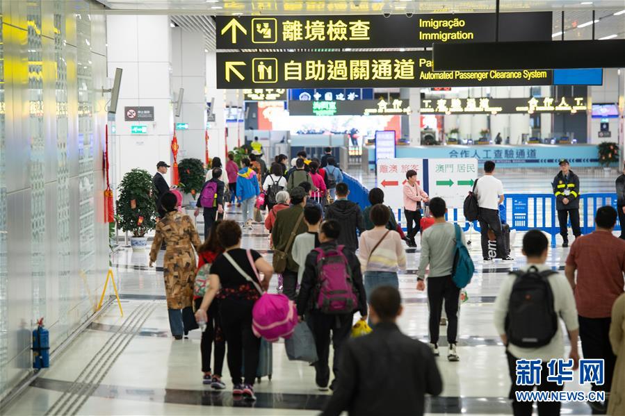 2月5日,旅客在港珠澳大桥澳门边检大楼准备前往珠海。 新华社记者 张金加 摄