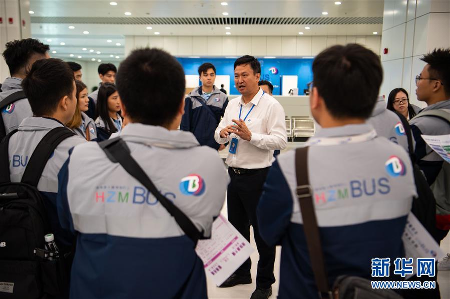 港珠澳大桥澳门边检大楼穿梭巴士员工在接受培训(2018年10月19日摄)。 新华社记者 张金加 摄