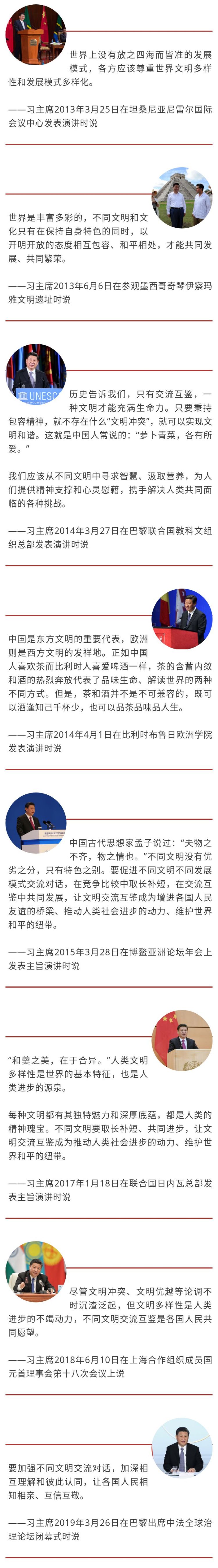 习主席强调文明是多彩的、平等的、包容的。今天,“第一报道”带你速览习主席近年来在不同国际场合关于文明交流的一些金句。