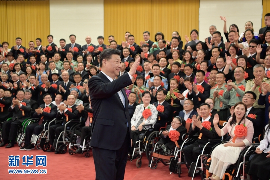 5月16日,党和国家领导人习近平、李克强、王沪宁等在北京人民大会堂会见第六次全国自强模范暨助残先进表彰大会代表。新华社记者 李学仁 摄