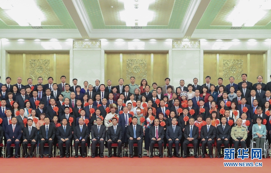 上午11时,习近平等来到人民大会堂北大厅,全场响起热烈掌声。习近平等同代表们热情握手,关切地询问他们的工作生活情况,并同大家合影留念。
