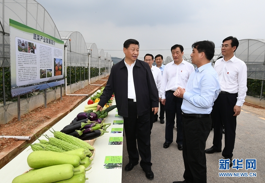 5月20日至22日,中共中央总书记、国家主席、中央军委主席习近平在江西考察,主持召开推动中部地区崛起工作座谈会并发表重要讲话。这是习近平在赣州市于都县梓山富硒蔬菜产业园考察调研。 新华社记者 谢环驰 摄